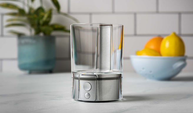The drinkware itself is plastic, specially molded to fit the Bowle’s puck. The plastic doesn’t cheapen the feel for me. A glass version would be heavier and much more expensive. But it’s not out of the question - the manufacturer has other types of drinkware in mind later on.