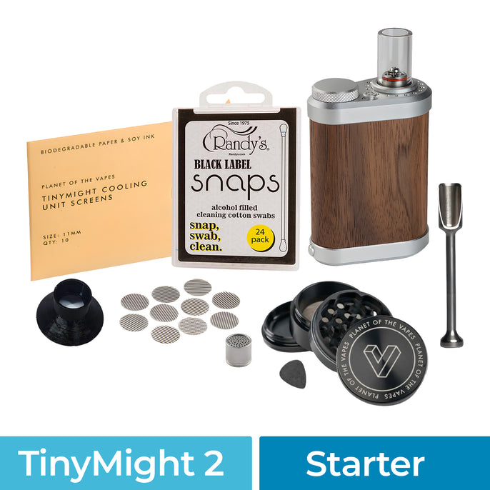The Tinymight 2 Starter Vaporizer Kit is for anyone who wants big vapor, slick features, and everything you need to hit the ground running. It pairs the powerful Tinymight 2 vaporizer with must-have accessories like a dosing capsule, POTV 4-Piece Grinder, and a loading scoop, with room to add plenty more down the road.