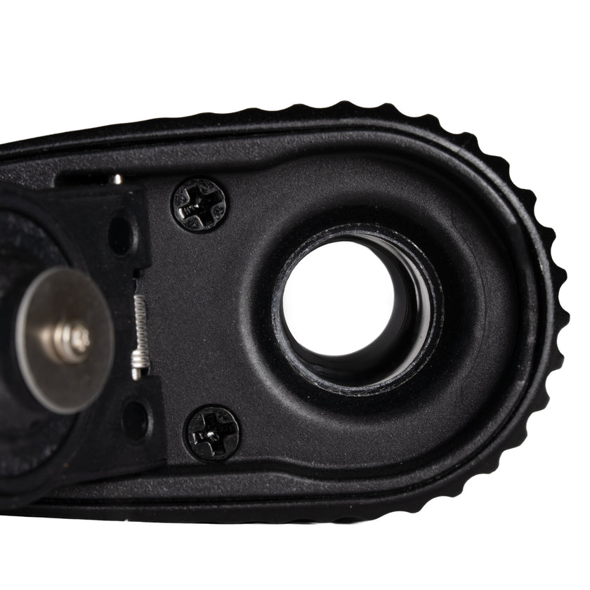 Slide the glass mouthpiece in or out to adjust the oven size. When you're done, pop open the oven and push the stem in to empty it out.